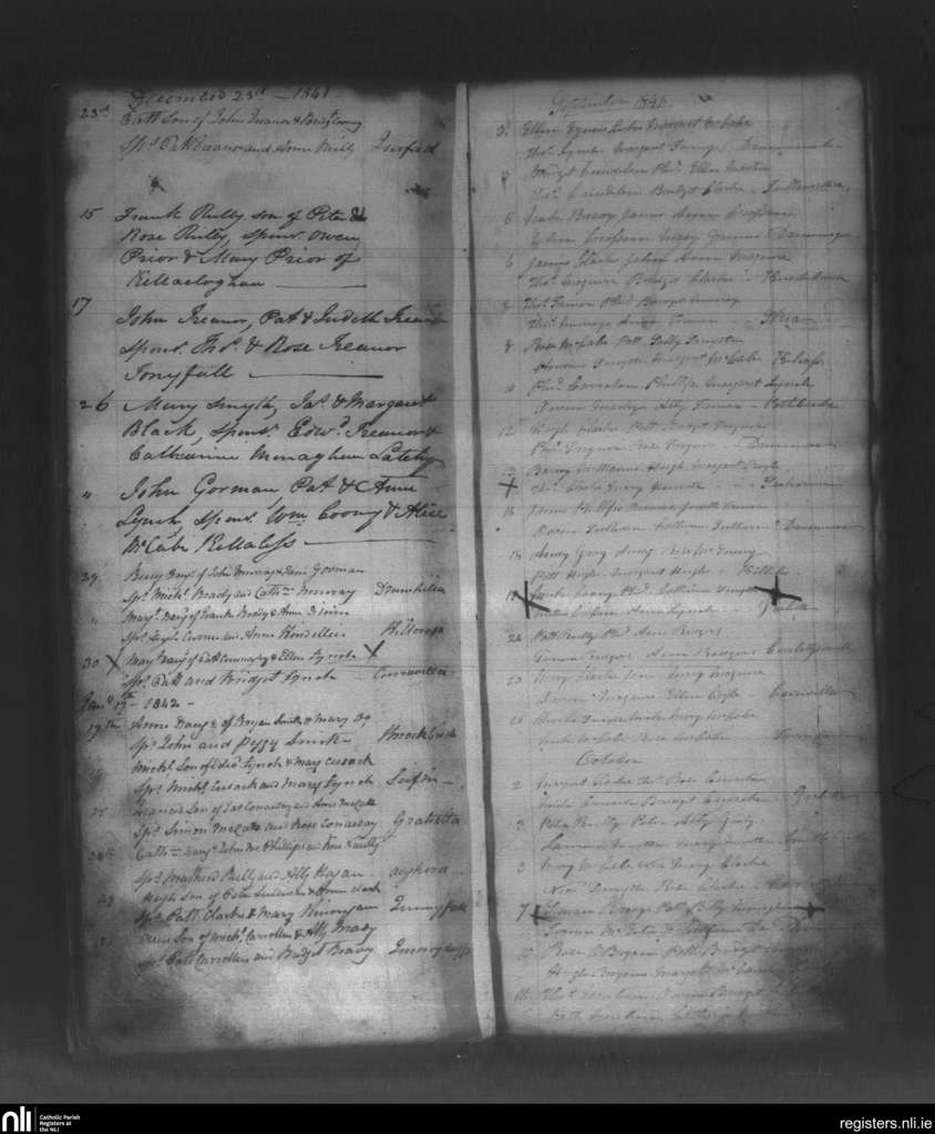 Knockbride; County of Cavan; Diocese of Kilmore. Baptisms, Sep. 1841 to Jan. 1842