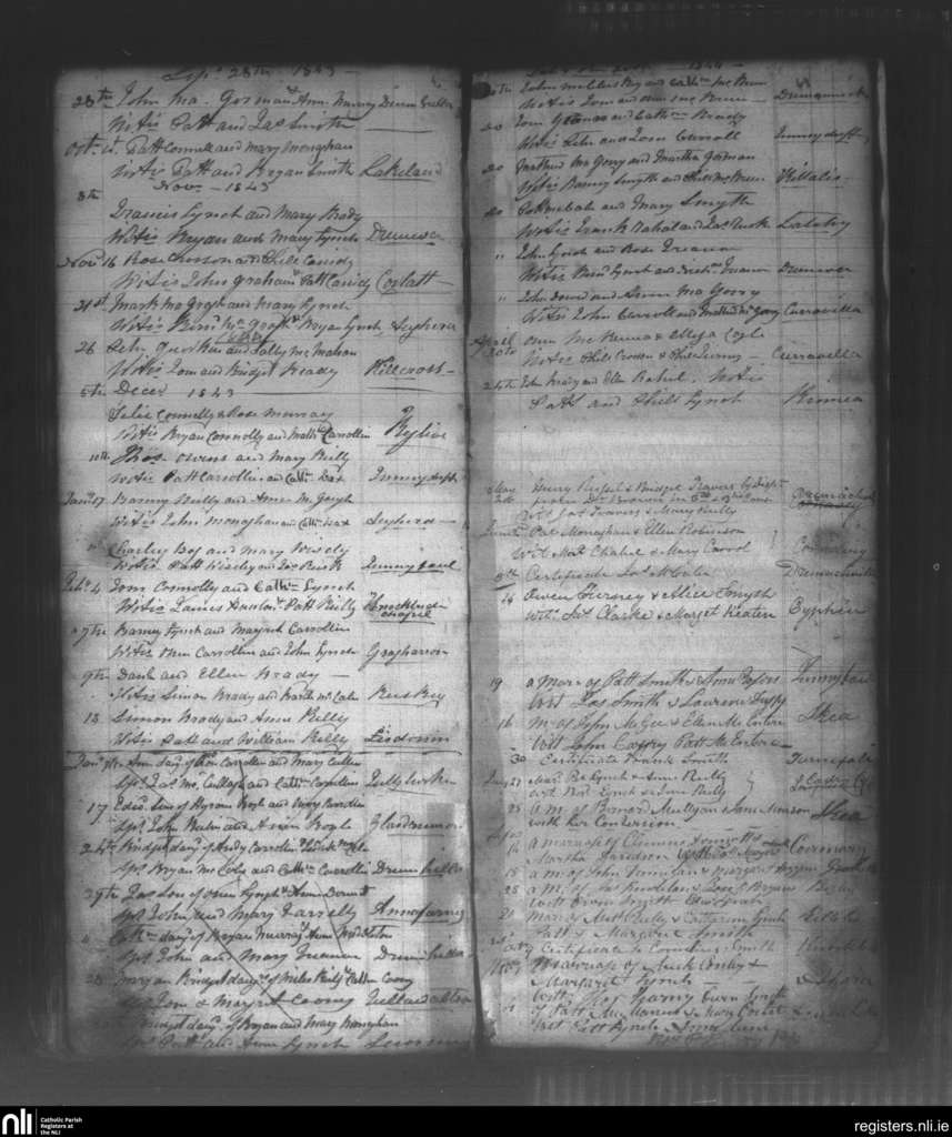 Knockbride; County of Cavan; Diocese of Kilmore. Marriages, Sep. 1843 to Nov. 1844