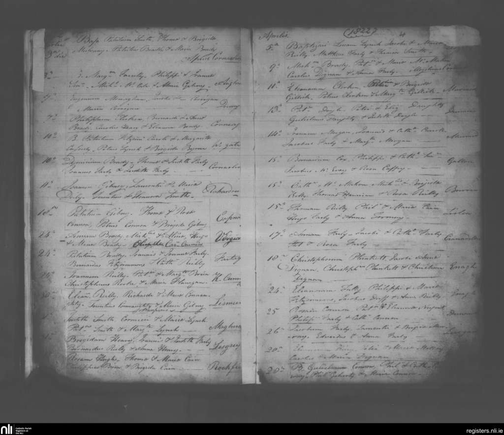 Lurgan; County of Cavan; Diocese of Kilmore. Baptisms, Mar. 1822 to Apr. 1822