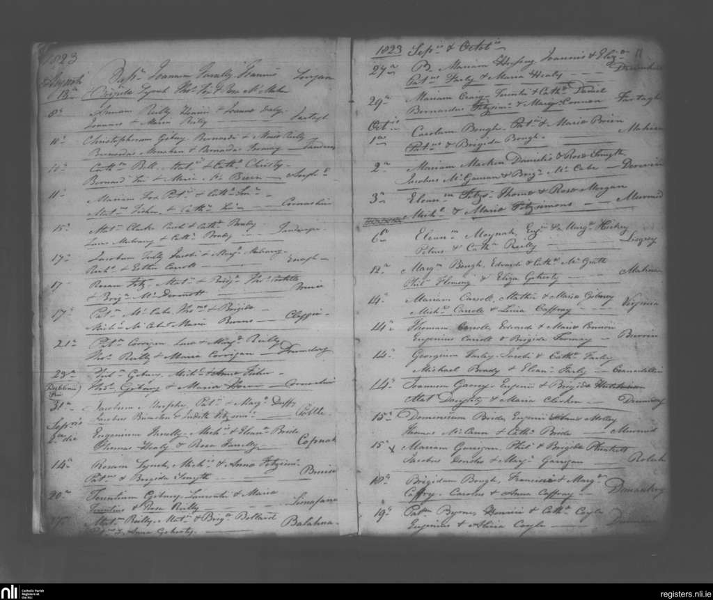 Lurgan; County of Cavan; Diocese of Kilmore. Baptisms, Aug. 1823 to Oct. 1823