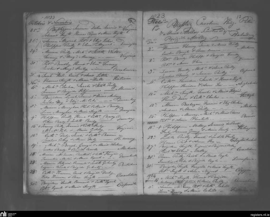 Lurgan; County of Cavan; Diocese of Kilmore. Baptisms, Oct. 1823 to Jan. 1824