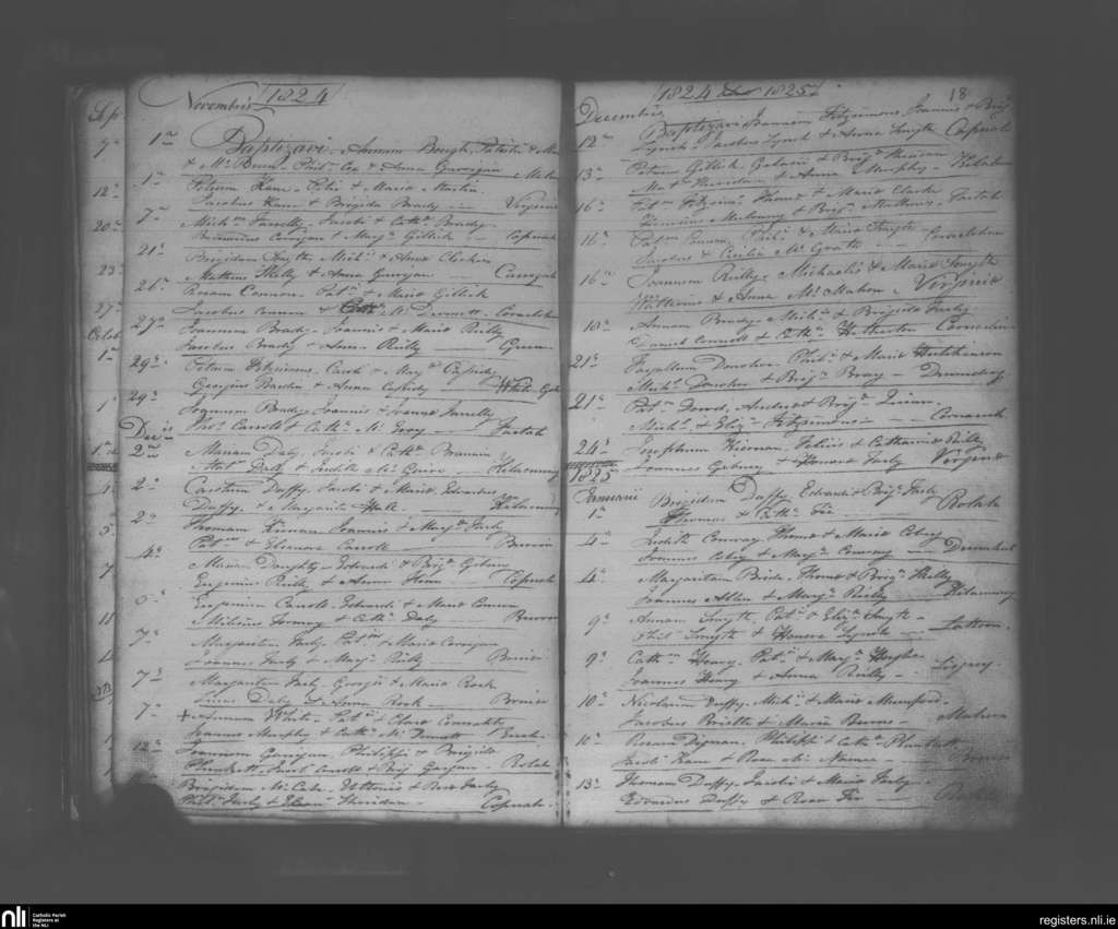 Lurgan; County of Cavan; Diocese of Kilmore. Baptisms, Nov. 1824 to Jan. 1825