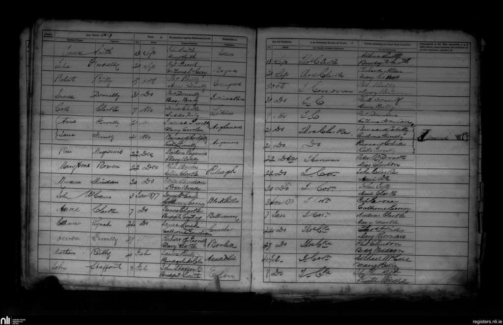 Moybologue; County of Cavan, Meath; Diocese of Kilmore. Baptisms, Sep. 1876 to Feb. 1877