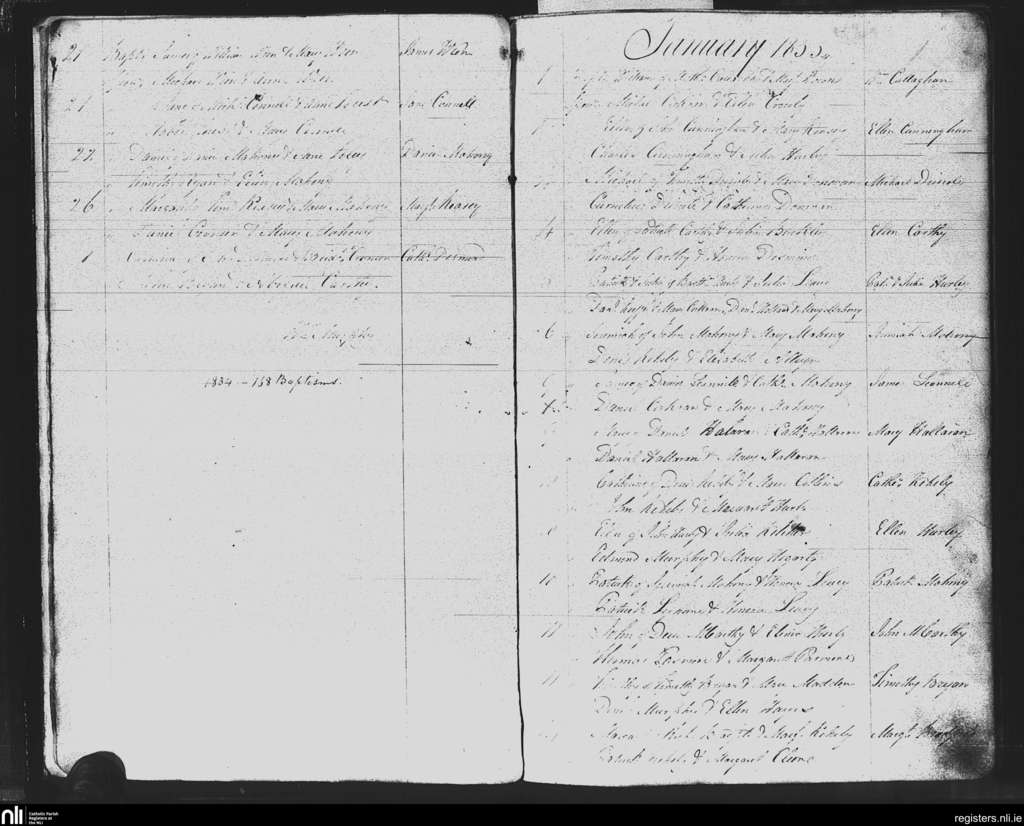 Murragh; County of Cork; Diocese of Cork and Ross. Baptisms, Dec. 1834 to Jan. 1835