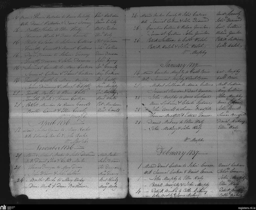 Murragh; County of Cork; Diocese of Cork and Ross. Marriages, Feb. 1836 to Feb. 1837
