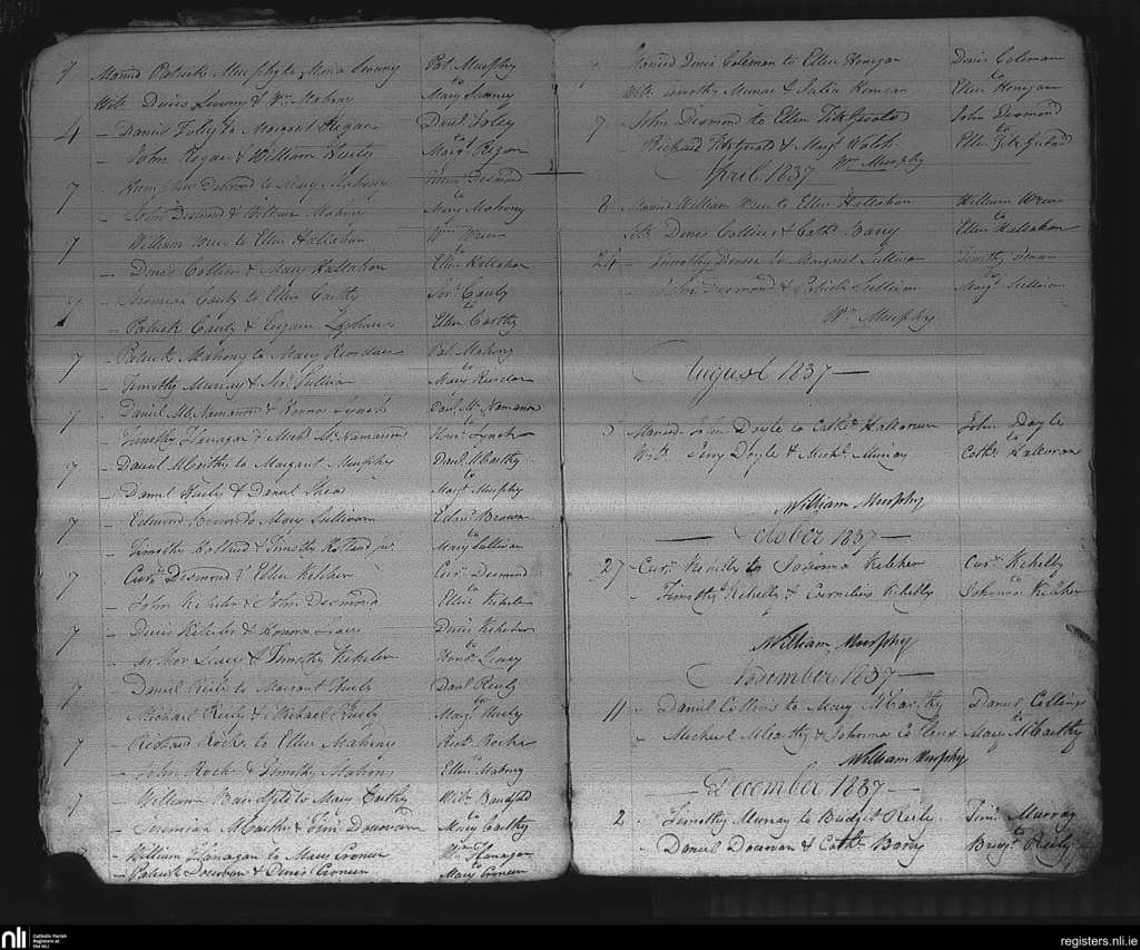 Murragh; County of Cork; Diocese of Cork and Ross. Marriages, Feb. 1837 to Dec. 1837