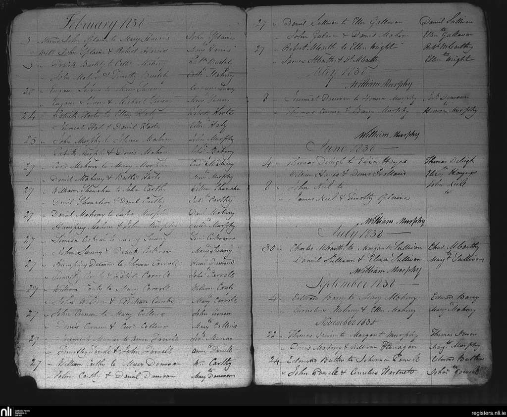 Murragh; County of Cork; Diocese of Cork and Ross. Marriages, Feb. 1838 to Nov. 1838