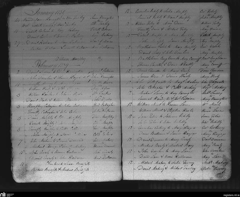 Murragh; County of Cork; Diocese of Cork and Ross. Marriages, Jan. 1839 to Feb. 1839
