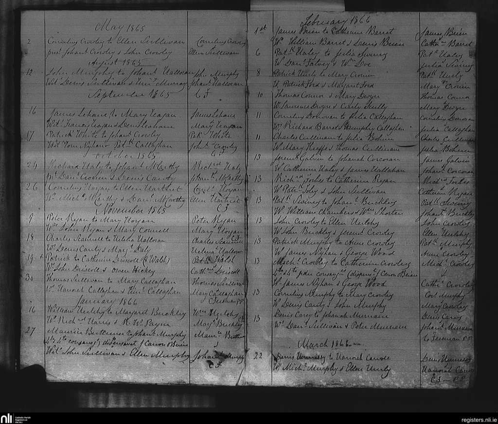 Murragh; County of Cork; Diocese of Cork and Ross. Marriages, May 1865 to Mar. 1866