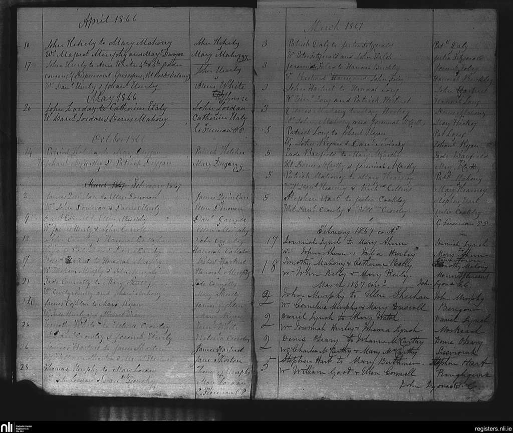 Murragh; County of Cork; Diocese of Cork and Ross. Marriages, Apr. 1866 to Mar. 1867