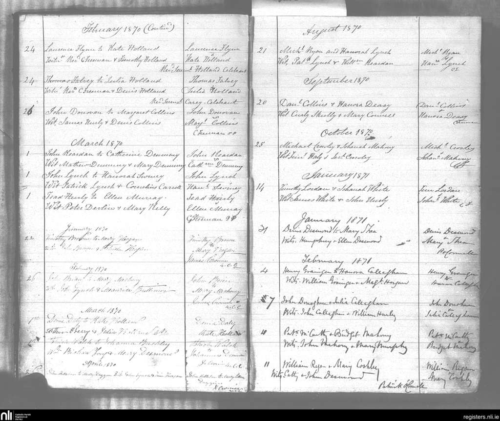 Murragh; County of Cork; Diocese of Cork and Ross. Marriages, Jan. 1870 to Feb. 1871