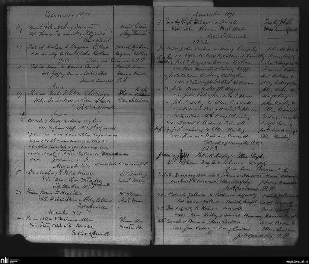 Murragh; County of Cork; Diocese of Cork and Ross. Marriages, Feb. 1871 to Feb. 1873