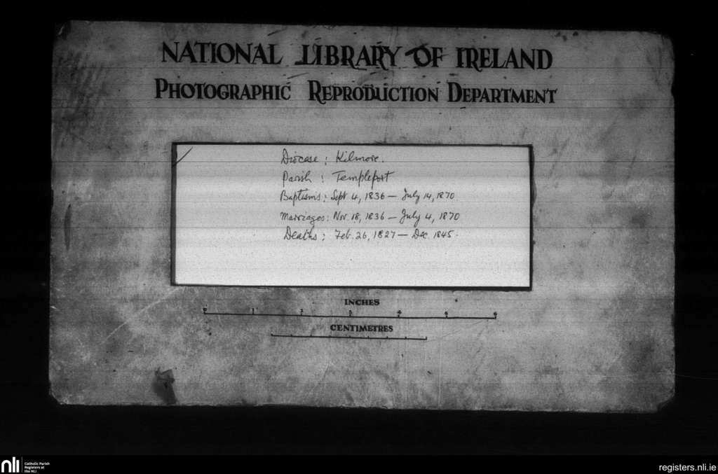 Templeport; County of Cavan; Diocese of Kilmore. Baptisms, Marriages, Deaths