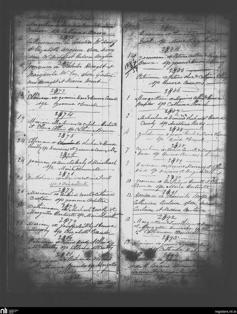 Abbeyfeale; County of Limerick; Diocese of Limerick. Baptisms, Mar. 1844 to Apr. 1844