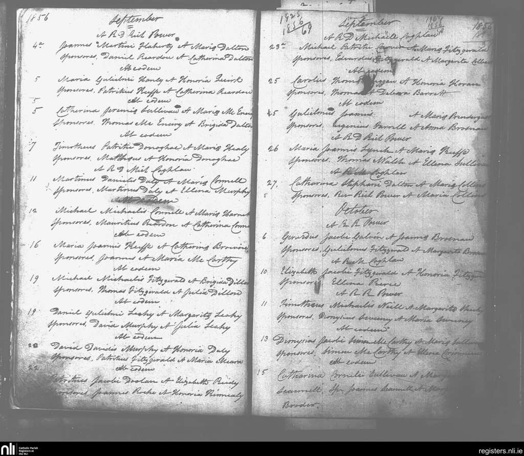Abbeyfeale; County of Limerick; Diocese of Limerick. Baptisms, Sep. 1856 to Oct. 1856