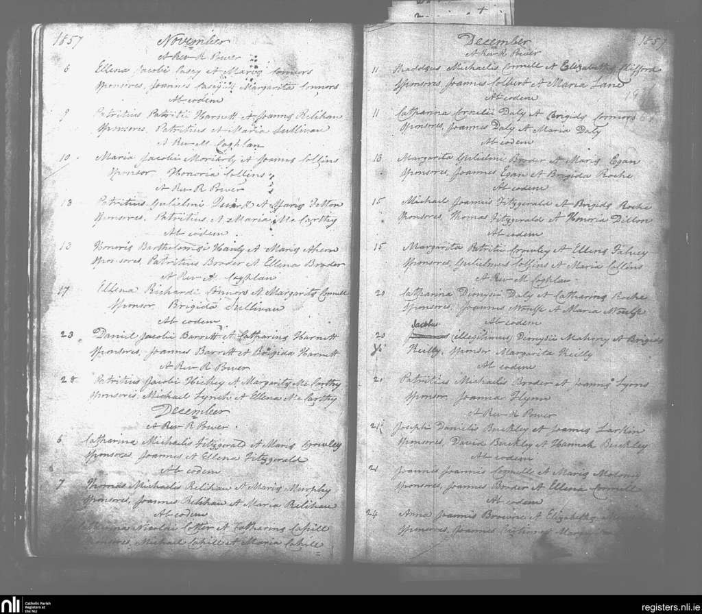Abbeyfeale; County of Limerick; Diocese of Limerick. Baptisms, Nov. 1857 to Dec. 1857