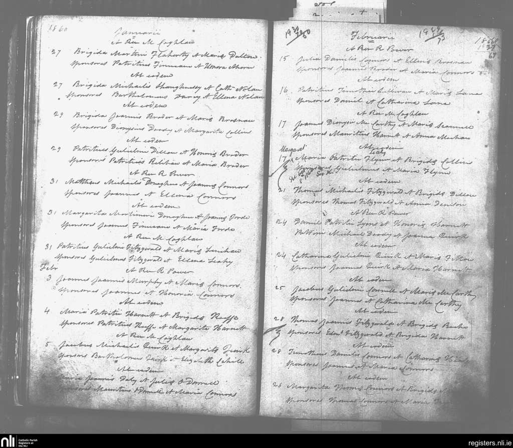 Abbeyfeale; County of Limerick; Diocese of Limerick. Baptisms, Jan. 1860 to Feb. 1860