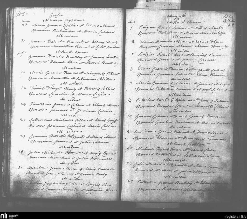 Abbeyfeale; County of Limerick; Diocese of Limerick. Baptisms, June 1860 to Aug. 1860