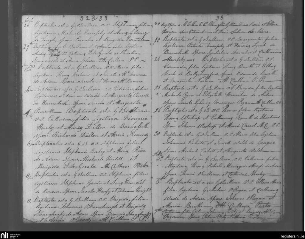 Adare; County of Limerick; Diocese of Limerick. Baptisms, Dec. 1832 to Feb. 1833