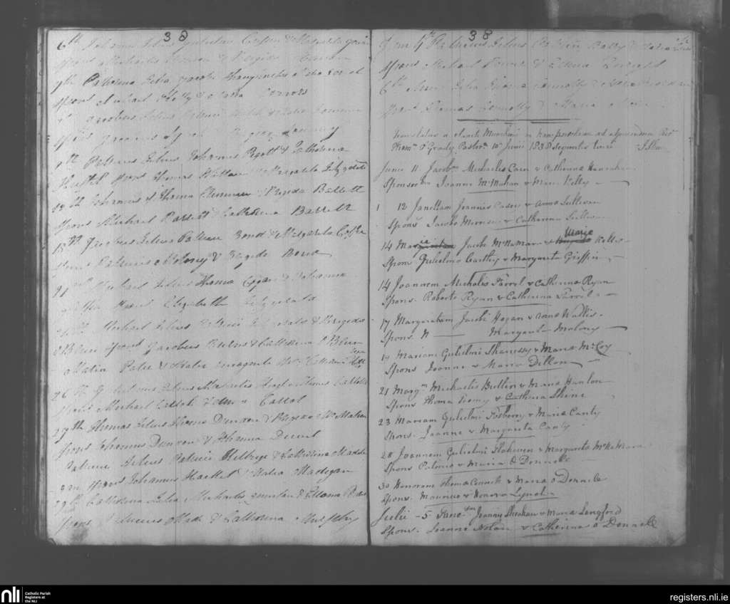 Adare; County of Limerick; Diocese of Limerick. Baptisms, May 1838 to July 1838