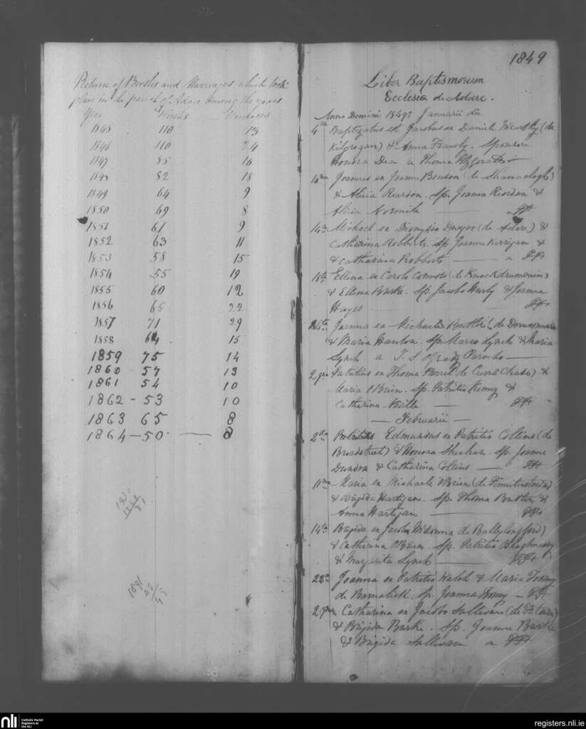 Adare; County of Limerick; Diocese of Limerick. Baptisms, Jan. 1849 to Feb. 1849
