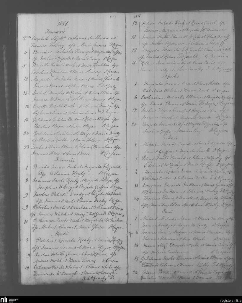 Adare; County of Limerick; Diocese of Limerick. Baptisms, Jan. 1851 to June 1851