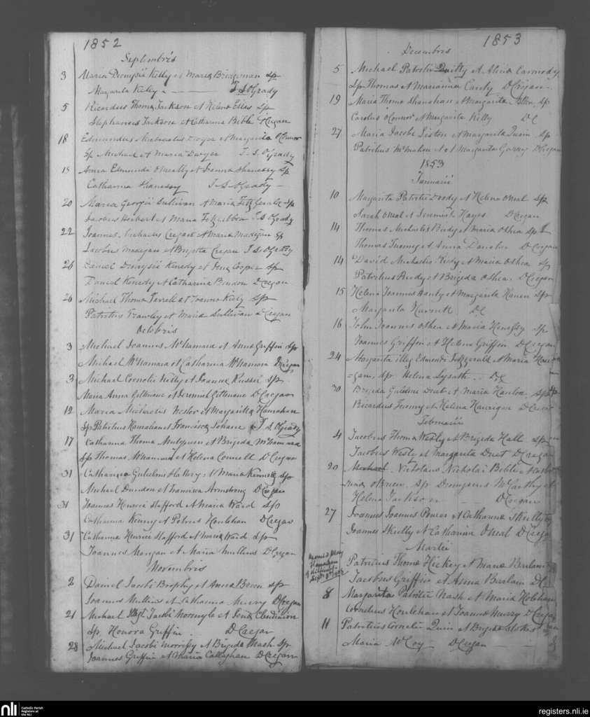 Adare; County of Limerick; Diocese of Limerick. Baptisms, Sep. 1852 to Dec. 1853