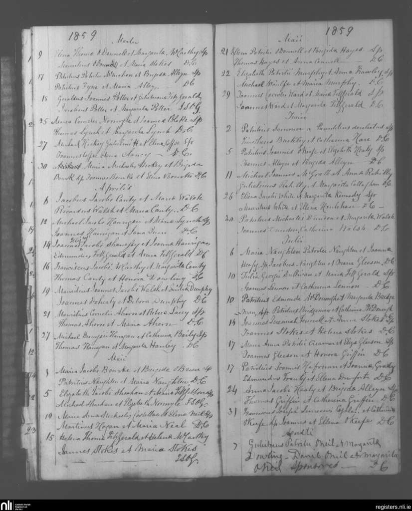 Adare; County of Limerick; Diocese of Limerick. Baptisms, Mar. 1859 to Aug. 1859
