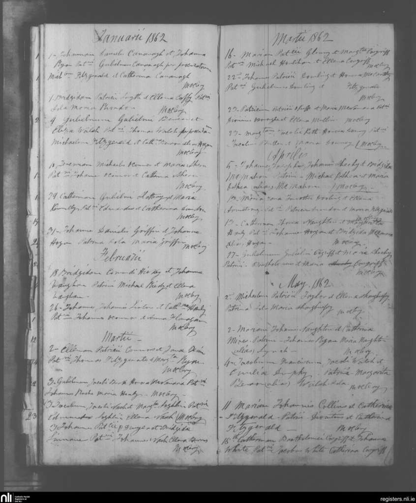 Adare; County of Limerick; Diocese of Limerick. Baptisms, Jan. 1862 to May 1862