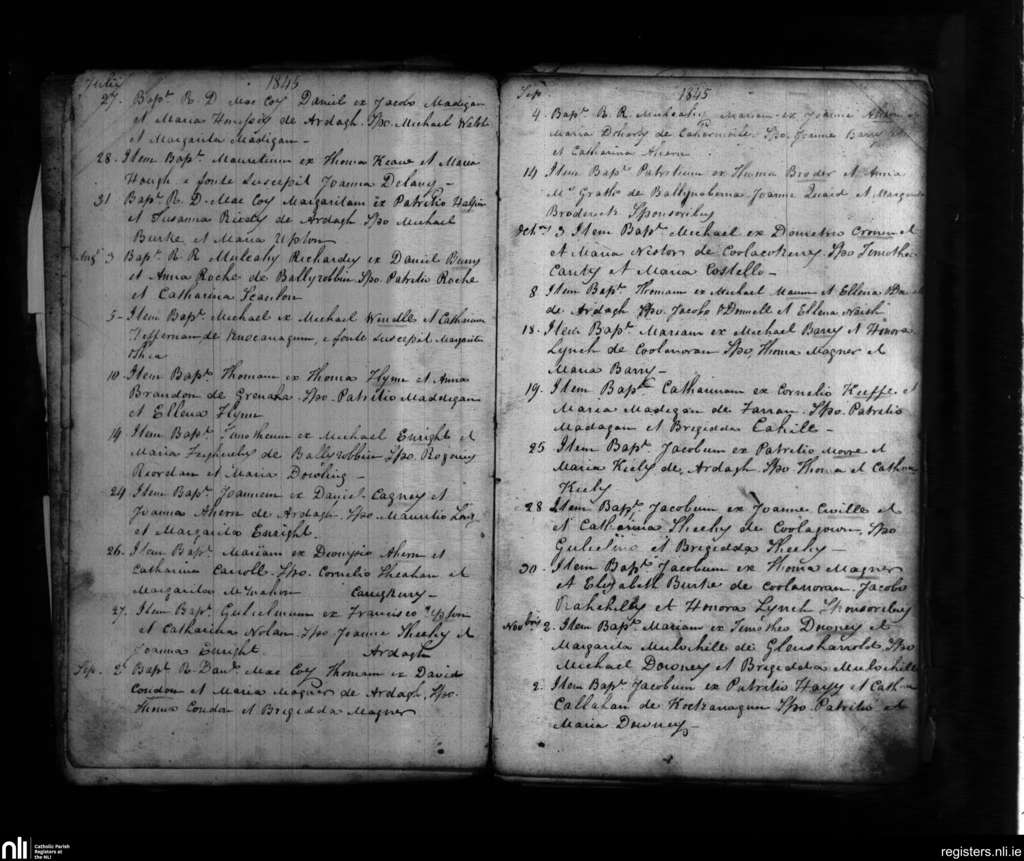 Ardagh; County of Limerick; Diocese of Limerick. Baptisms, July 1845 to Nov. 1845