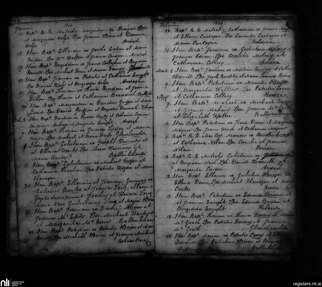 Ardagh; County of Limerick; Diocese of Limerick. Baptisms, Jan. 1846 to Mar. 1846