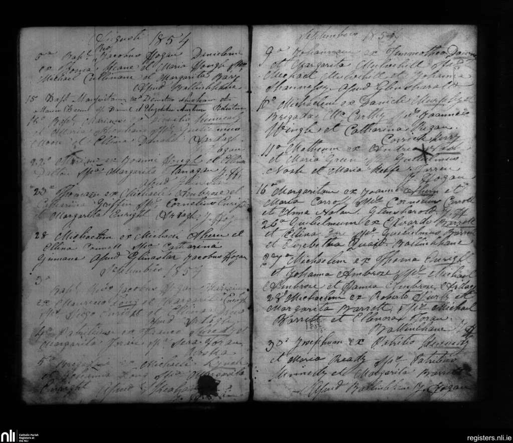 Ardagh; County of Limerick; Diocese of Limerick. Baptisms, Aug. 1854 to Sep. 1854