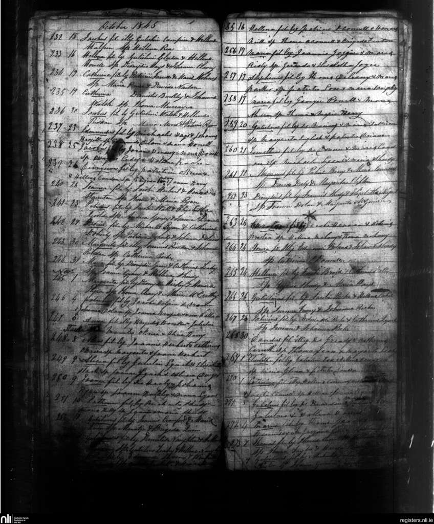 Kilfinane; County of Limerick; Diocese of Limerick. Baptisms, Oct. 1845 to Dec. 1845