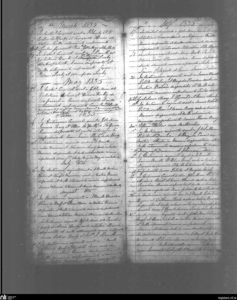 Kilfinane; County of Limerick; Diocese of Limerick. Marriages, Mar. 1835 to Nov. 1835