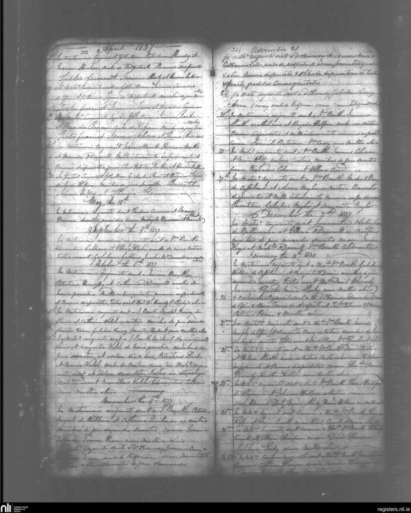 Kilfinane; County of Limerick; Diocese of Limerick. Marriages, Apr. 1837 to Feb. 1838