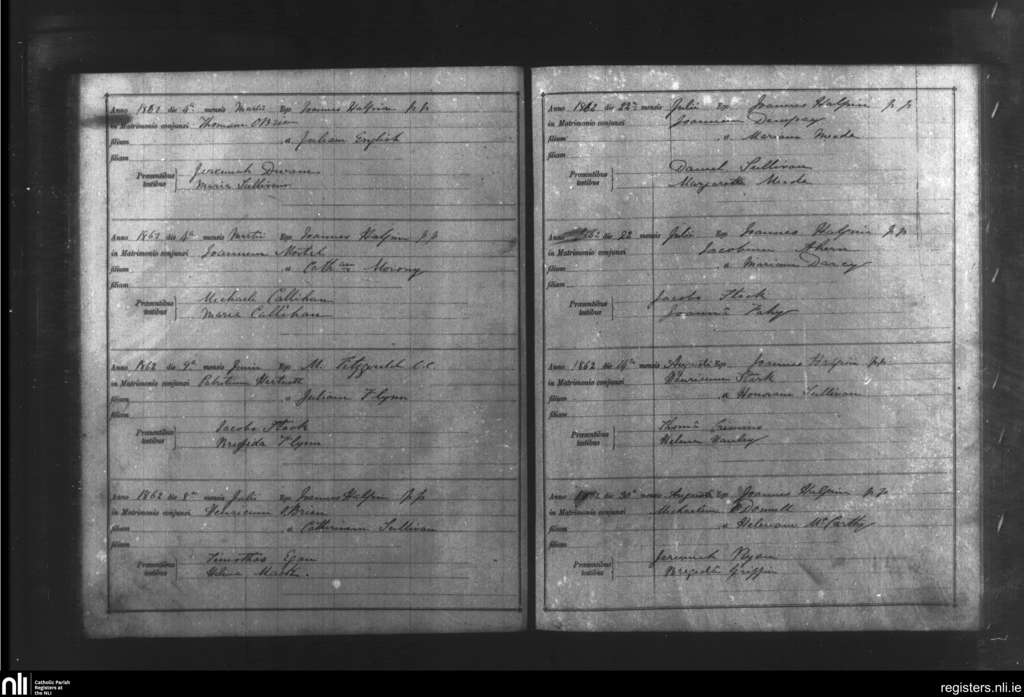 Kilfinane; County of Limerick; Diocese of Limerick. Marriages, Mar. 1862 to Aug. 1862