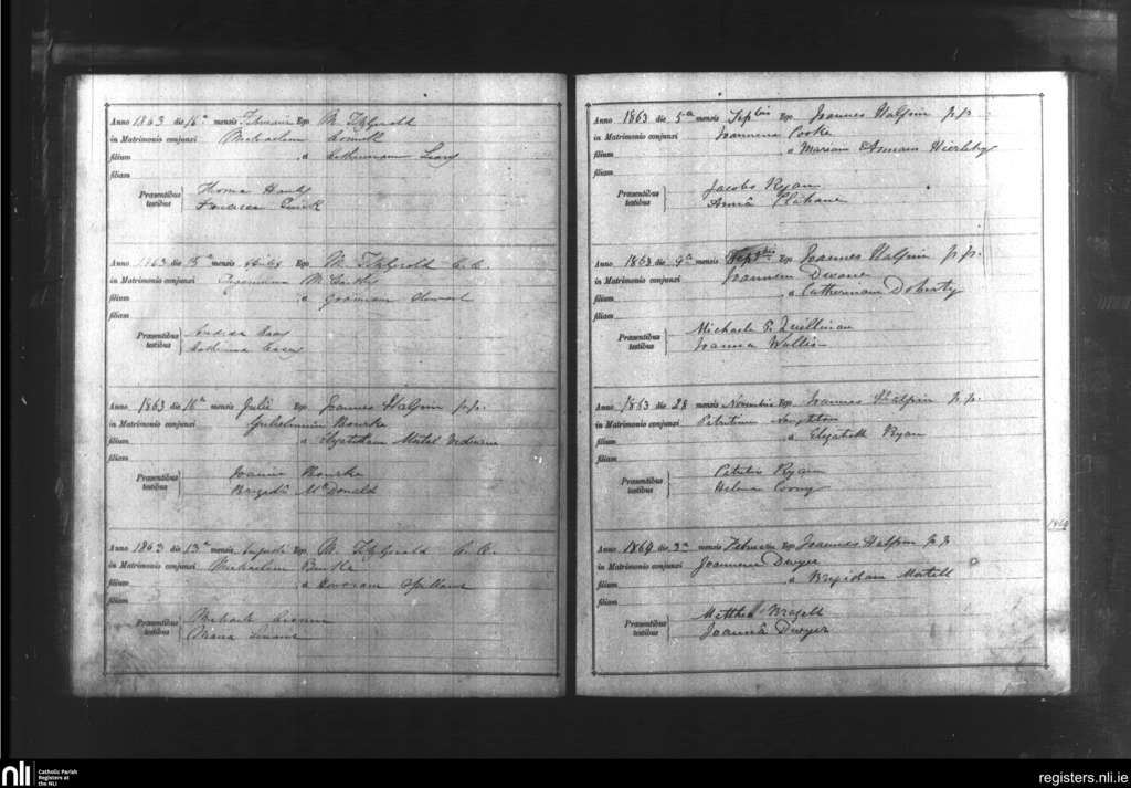 Kilfinane; County of Limerick; Diocese of Limerick. Marriages, Feb. 1863 to Feb. 1864
