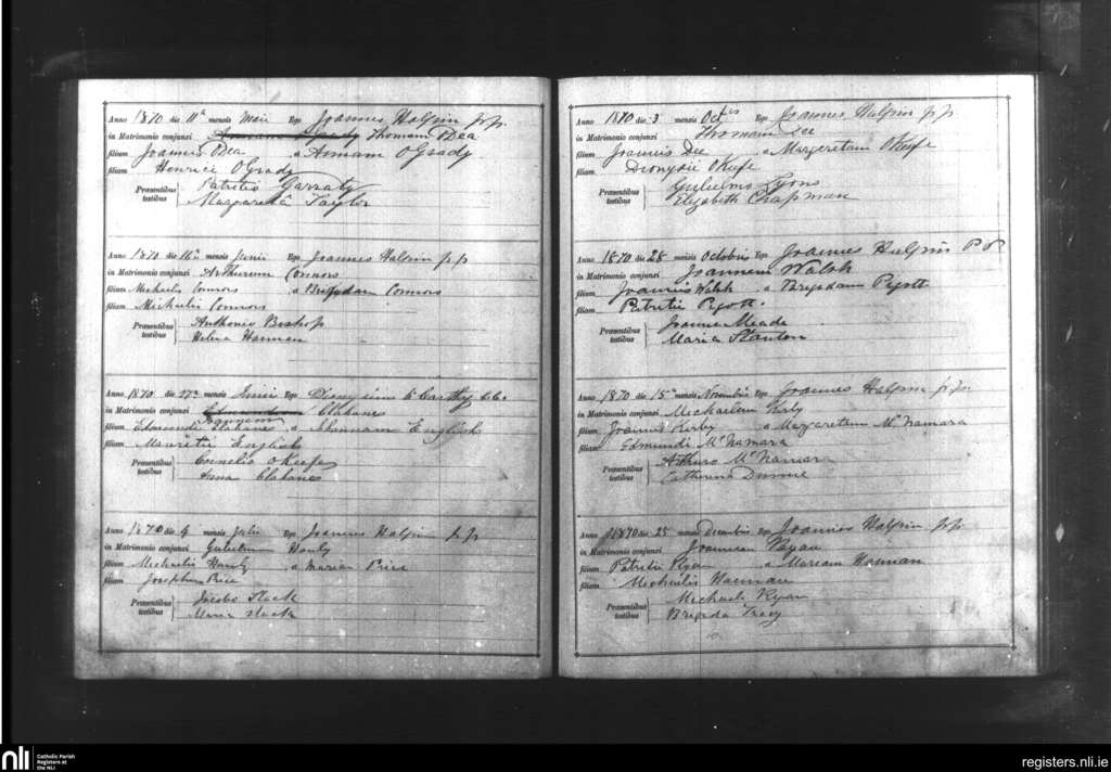 Kilfinane; County of Limerick; Diocese of Limerick. Marriages, May 1870 to Dec. 1870