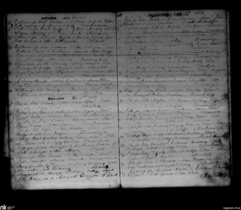 Newmarket; County of Cork; Diocese of Cloyne. Baptisms, Oct. 1822 to Dec. 1822