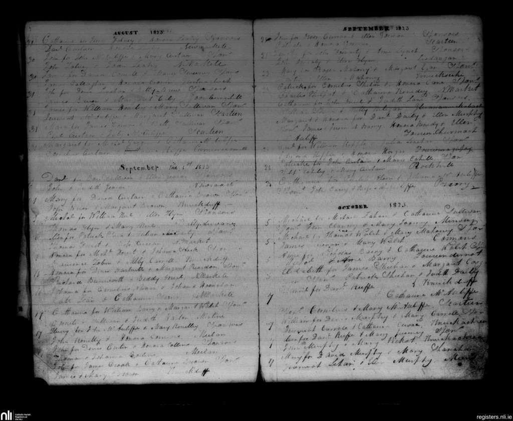 Newmarket; County of Cork; Diocese of Cloyne. Baptisms, Aug. 1823 to Oct. 1823