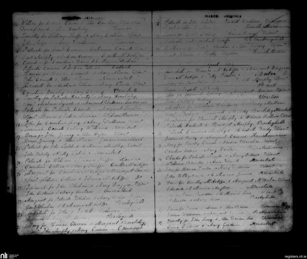 Newmarket; County of Cork; Diocese of Cloyne. Baptisms, Mar. 1824 to Apr. 1824