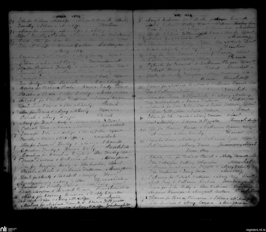 Newmarket; County of Cork; Diocese of Cloyne. Baptisms, Apr. 1824 to June 1824