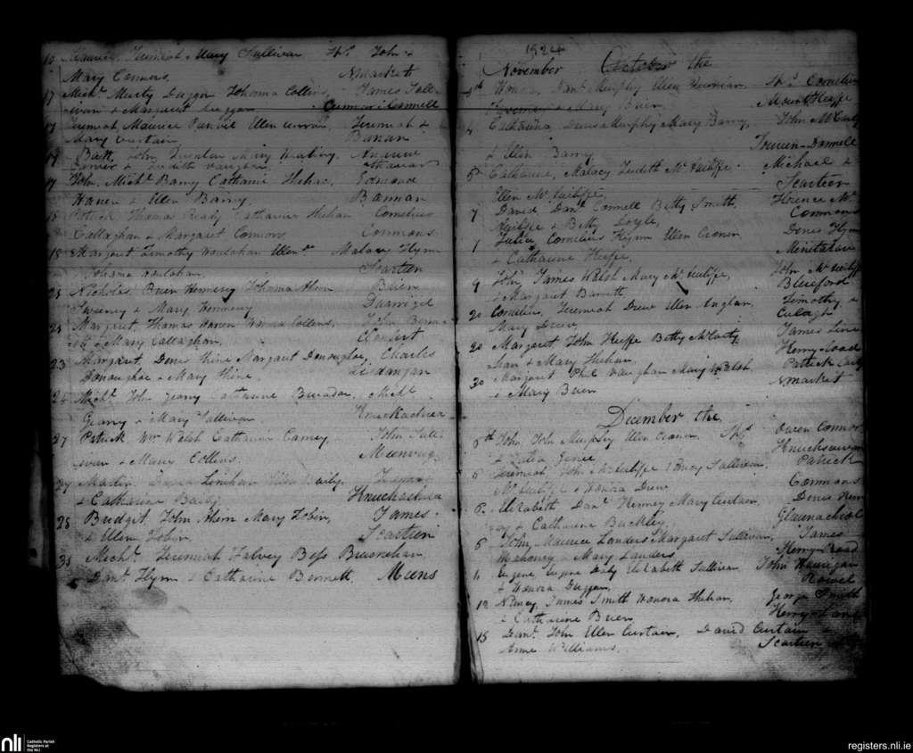 Newmarket; County of Cork; Diocese of Cloyne. Baptisms, Oct. 1824 to Dec. 1824
