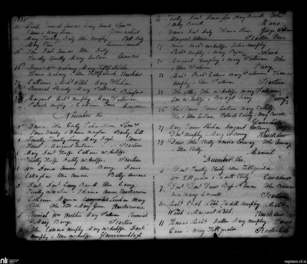 Newmarket; County of Cork; Diocese of Cloyne. Baptisms, Oct. 1825 to Dec. 1825