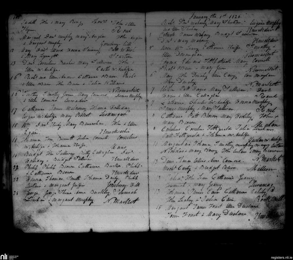 Newmarket; County of Cork; Diocese of Cloyne. Baptisms, Dec. 1825 to Jan. 1826