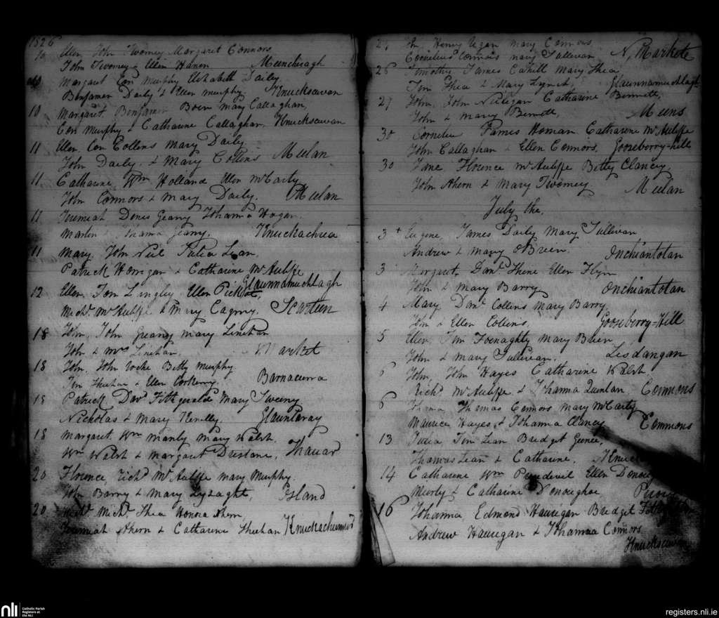 Newmarket; County of Cork; Diocese of Cloyne. Baptisms, June 1826 to July 1826