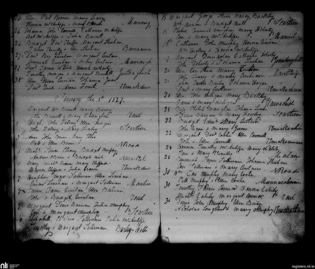 Newmarket; County of Cork; Diocese of Cloyne. Baptisms, Dec. 1826 to Jan. 1827