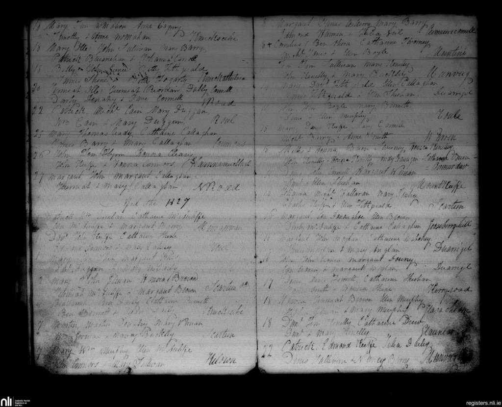 Newmarket; County of Cork; Diocese of Cloyne. Baptisms, Mar. 1827 to Apr. 1827