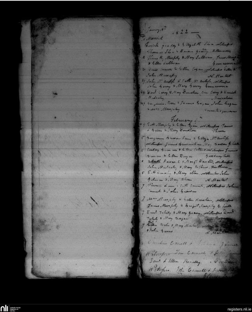 Newmarket; County of Cork; Diocese of Cloyne. Marriages, Jan. 1822 to Feb. 1822