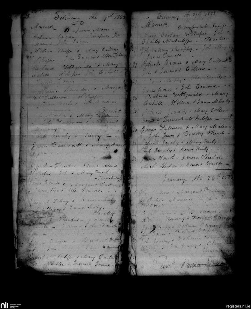 Newmarket; County of Cork; Diocese of Cloyne. Marriages, Feb. 1822 to Jan. 1823